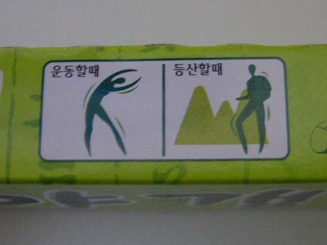 茶色っぽい箱の方には開け方・食べ方の説明の絵が描かれているのだけれど、緑の箱の方は…ピクトグラムのピクト君?