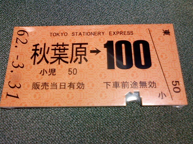 | × [PR]上記の広告は3ヶ月以上新規記事投稿のないブログに表示されています。新しい記事を書く事で広告が消えます。 のち![]() 職場で、あるノートを使っていたら、コレがなんだか好評♪ …っていうか、ネタ的にオイシイというか…目にした人はほぼ必ず「うわぁ〜、何それ!?」って言う代物。 そんなにインパクト強いですか〜? ………うん、強いんだろうな……… そういえば私も始めて見た時「うわぁ〜!なになにっ!?」って思ったんだっけ…(^^; どんなノートかと言うと… こんなの ↓ (H20.10.14はたぶんこのノートのデビュー日。 ちなみに10月14日が『鉄道の日』) 切符じゃないですよ〜 ノートですよ〜 ちなみに右隅で光ってる丸いのは500円玉です。 ほら、切符よりずっと大きいでしょ? うっかり130円かと思ったら、550円もするノートでしたよ! このノートを使っていたら職場の係長の目にとまり「何、それっ!? え?ノート? 面白い!! いいなぁ〜」って何だかエラく気に入った模様。 この方、実はけっこう電車好き。 そして今月イッパイでいなくなっちゃう。 !(・。・)b …そうだ! 「なんでしたら餞別にプレゼントしましょうか?」 「ホントに? 欲しい!!」 「それじゃ、最後の日までに見つけられた買ってきますよ!」 自分で購入したのは何年か前の日比谷公園での鉄道の日イベント会場だったけど、確か鉄道博物館で売っていたはず。 ってことで、本日は仕事が終わった後に鉄道博物館へGo! ホントは明日にでも遊びに行きがてら探して来ようと思っていたのだけれど…明日はやらないといけない事がいろいろ出来ちゃってそれどころじゃなくなっちゃった…orz Teppa倶楽部の会員証があるから売店で買い物するためだけに入館するのもアリ。 そうじゃなきゃ入館料1000円かかるからね…売店覗くためだけには入れないよね。 売店で無事にお目当てのノートを発見したけれど… w( ̄△ ̄;)wおぉっ! なんとっ! 鋏痕(昔、改札で切符をパッチンしてもらった時にできた改札鋏の痕)つきバージョンのノートもあるよっ! 先日、電車居酒屋で飲みながらノートを見た面々が「コレ、鋏いれちゃえ!」とか言ってたけど…あるよ鋏痕入り!ちゃんと商品になってたよっ!! ↓ (S62.3.31はたぶん国鉄最後の日) 若干、使いにくそうな気がしなくもないけれど、ネタ的にはコレも押さえておかないといかんだろ〜!…ってことで2冊とも購入♪ ウケ狙いだけなのもアレなので、他に0系のイラスト入りのブックカバーも購入して、餞別はこんなところで。 最後の日にお渡しするのが楽しみですよ! 鋏痕入りの方のノートにどんなリアクションをして頂けるか…( ̄∇ ̄) PR この記事にコメントする